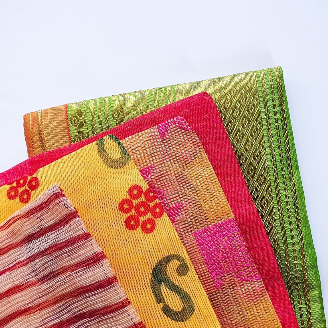 Note: As each item is made from upcycled sari fabric, colours and patterns will vary. You will receive one unique, one-of-a-kind cloth. Minor imperfections enhance its charm!