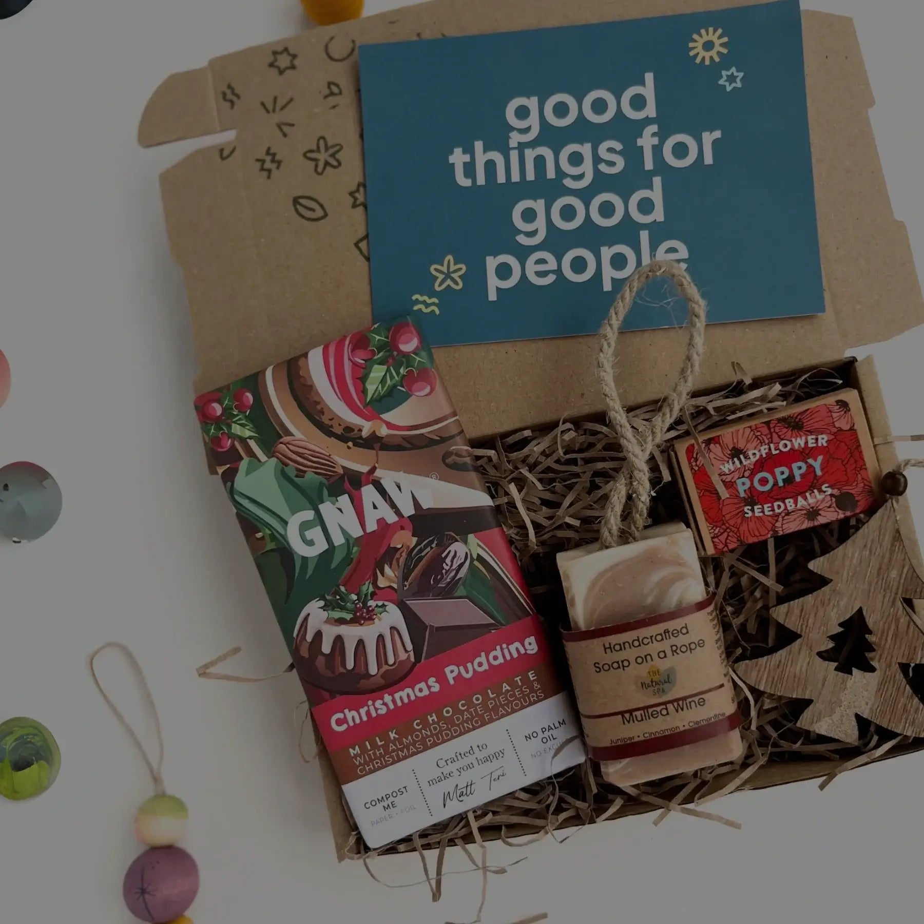 Curate a thoughtful gift box with sustainable self care goodies, gourmet treats, and more.