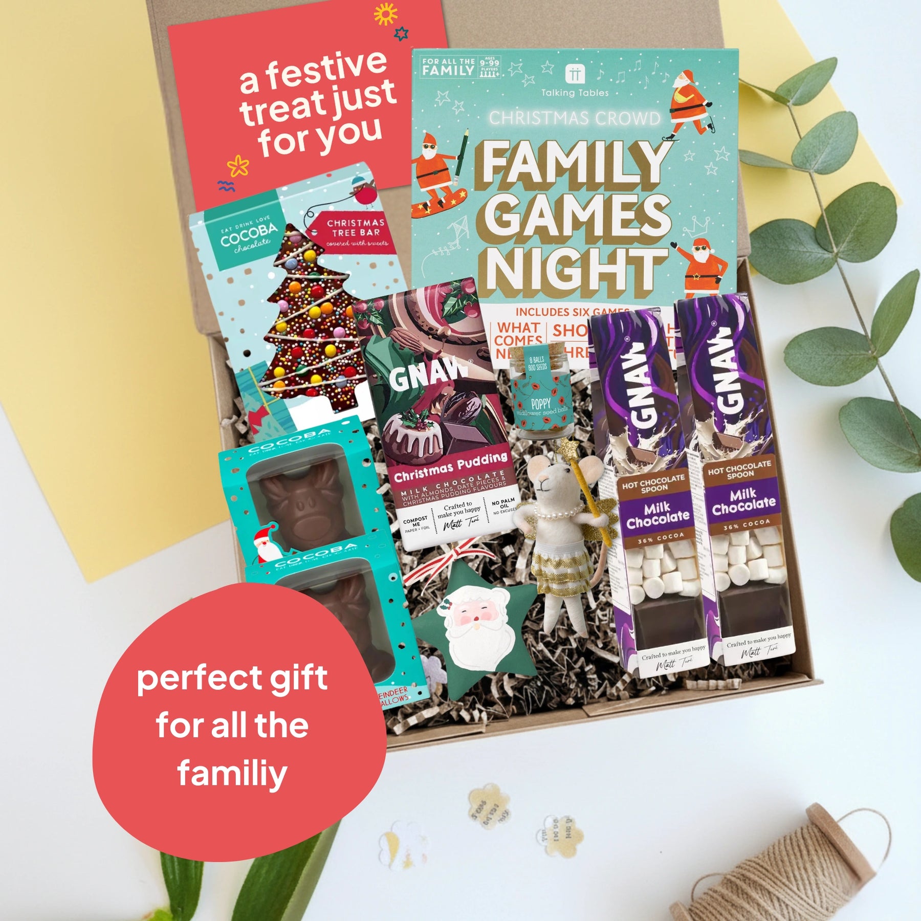 This fun family Christmas hamper will delight all ages for cosy winter weekend or to enjoy during the festive break. A thoughtful and unique gift that feels good to give!