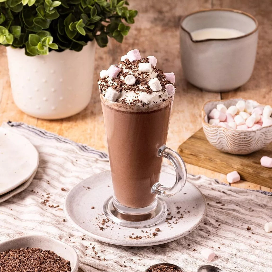 Silky Smooth: Made with 35% creamy milk chocolate, the fine flakes melt effortlessly into a paste before mixing with warm milk. The result is a wonderfully smooth drink with a gentle sweetness and rich cocoa flavour.